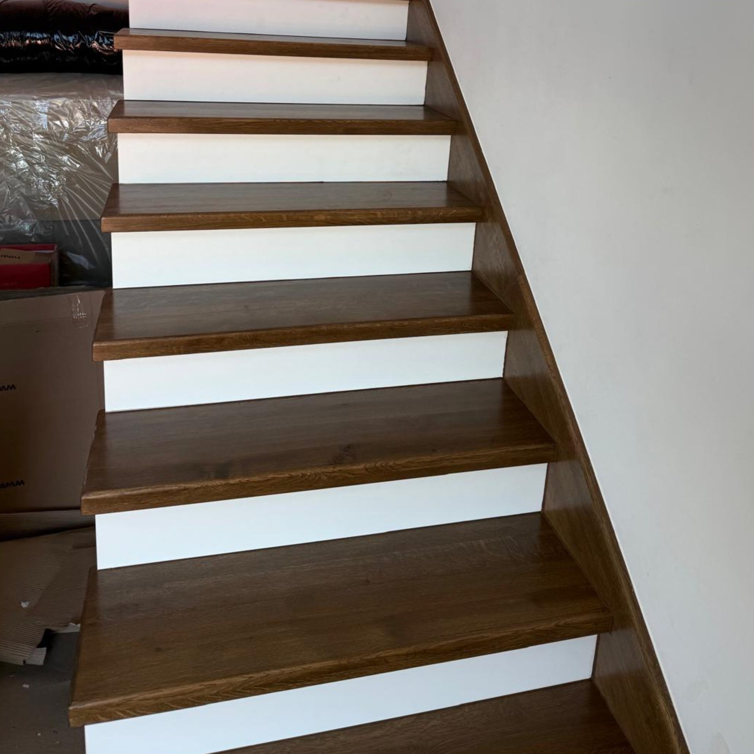 Gasesti in Galeria foto de mai jos scari realizate din lemn masiv de stejar, frasin si fag. Placam cu trepte din lemn masiv pe scari existente cu structura de beton sau construim scari pe structura de lemn.